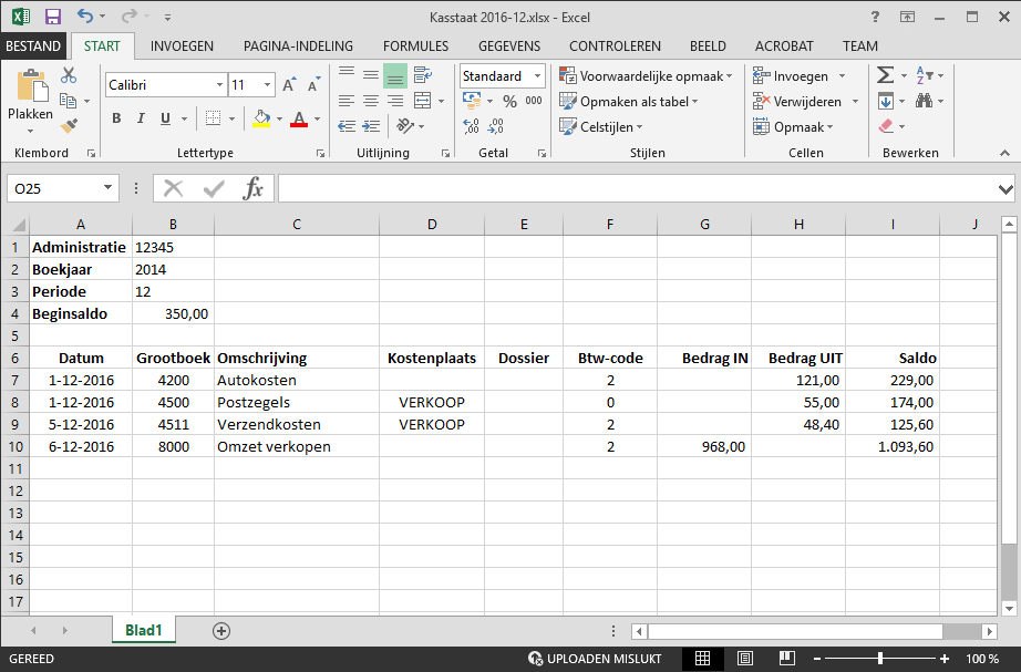 Omdat in bovenstaand voorbeeld de kolomnamen in rij 6 aangegeven zijn, wordt regel 1 tot en met 5 niet meegenomen in de dataset.