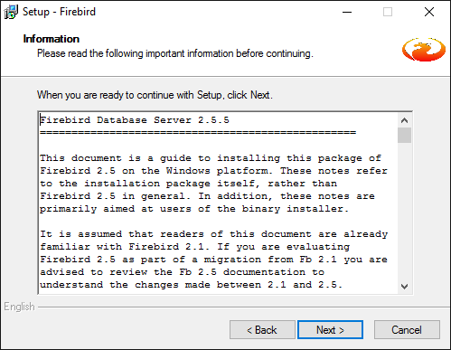 Bij het downloaden van Firebird kan er tevens gekozen worden voor de installer of de zip kit. Met beide onderdelen is het mogelijk Firebird te installeren. Gebruik Windows executable installer voor een standaard installatie van Firebird (aanbevolen), gebruik de Zip kit om een handmatige of geavanceerde installatie uit te voeren.