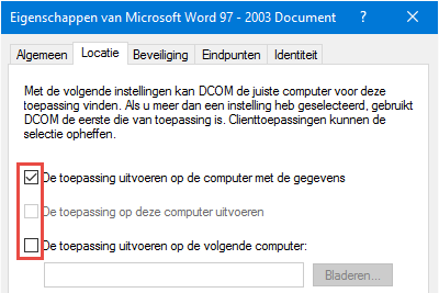 Open DCOM-configuratie en selecteer Microsoft Word 97 - 2003 Document.