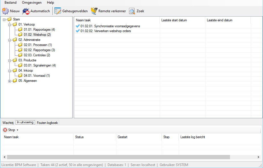Na het aanmelden in TaskManager Client verschijnt het hoofdvenster: