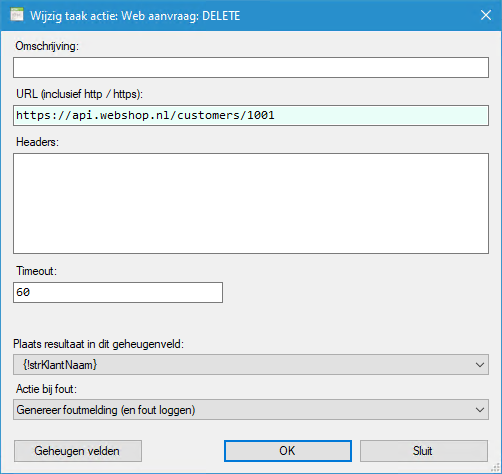 Hierin geeft u aan hoeveel seconden de actie maximaal op een antwoord moet wachten. Na het verstrijken van deze tijd, zal er niet meer gewacht worden op een antwoord van de server en zal er een fout optreden.